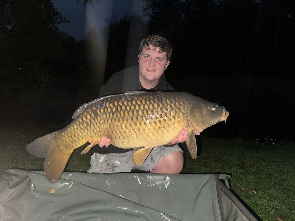 It was about 5 in the evening it had been over cast all day but started raining , I had a few beeps then it screamed of I was playing it for about 10 minutes then it got tired.i have been fishing this lake since I have been 10 it is not a easy lake but i think there is a 30 lb common I could believe it when it said 28 lb 28 is my pb so far but ill be going to bunners hall in December so hopefully i can get one in the back of the net
