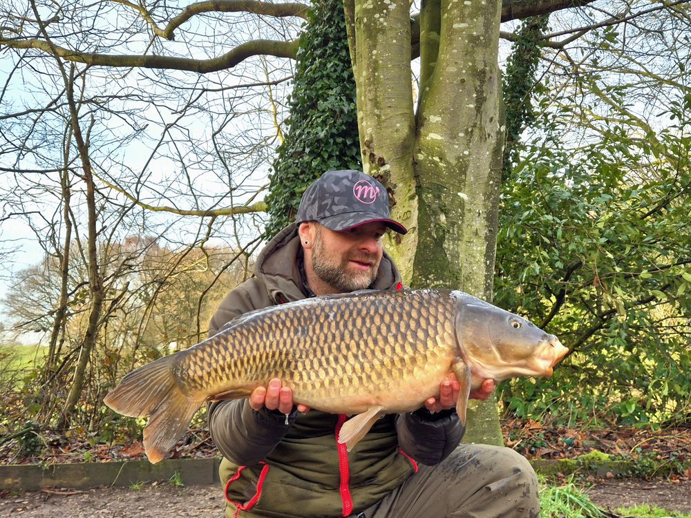 A mild wet weekend with low pressure just before the full moon looked favourable for an overnighter. A bream at midnight broke an otherwise quiet night, until a dawn bite alarm signalled a slow take and fish on. A lovely winter Common in the net.
