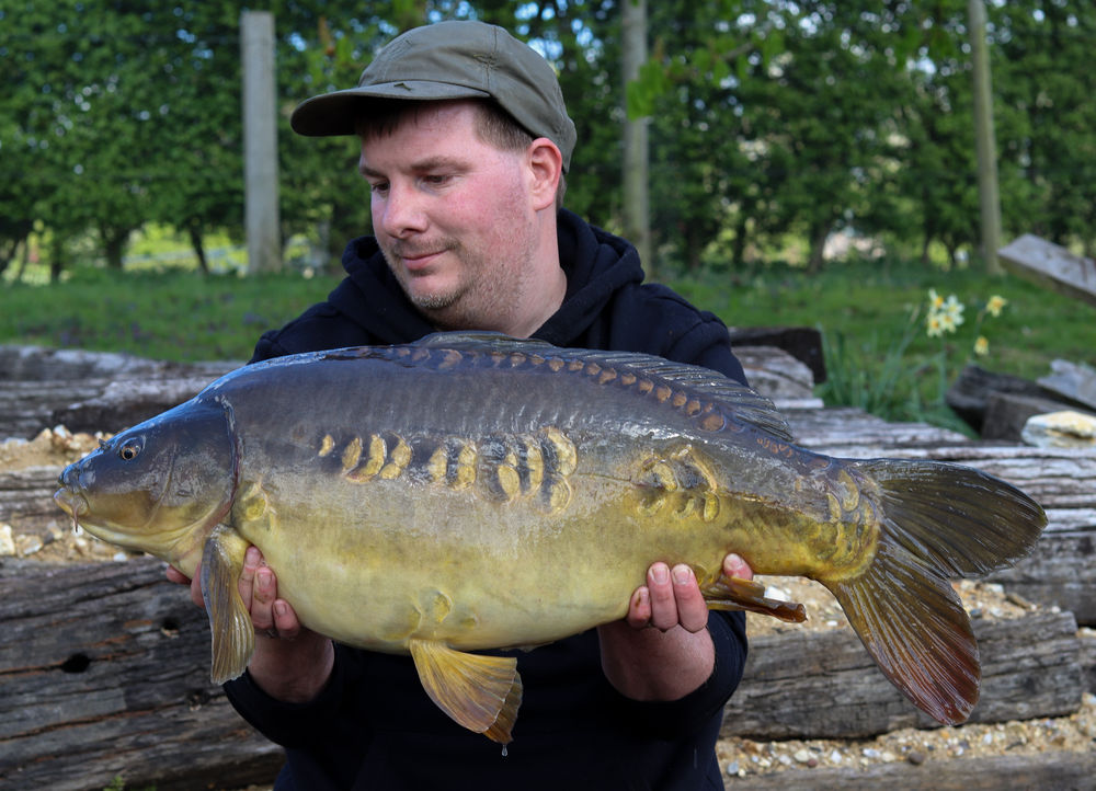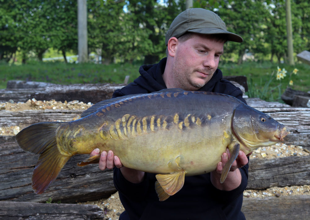 My first trip out for a while due to recent birth of my son i managed to go to a private lake for a day to try bag one after an unsuccessful winter. I managed a double take with this one being 21lb followed by a lovely 31lb mirror. I seem to have spooked the carp off after this but later In the afternoon the rod was away resulting in a very nice 34.4oz mirror