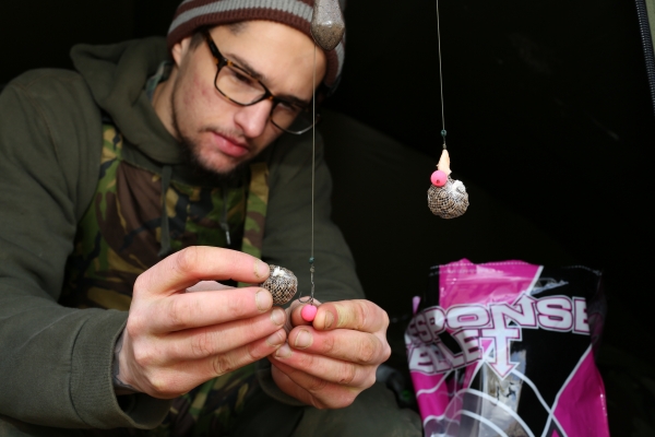 Clipping-up and accuracy is always an important part of my approachA small mouthful of pellet nicked onto the hook to increase attractionAround a dozen Spombs to start the session and get the fish grubbing about